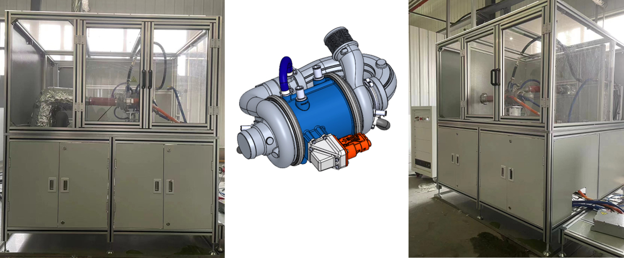 2. 整套設(shè)備由設(shè)備本體, 測(cè)試機(jī)柜, 冷水機(jī)構(gòu)成。